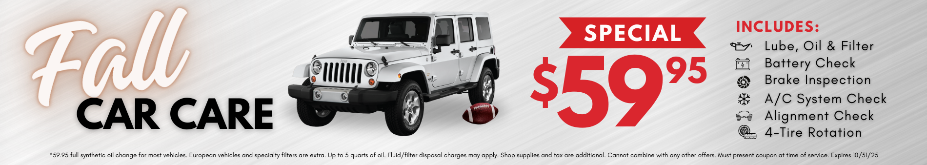Come in for our $59.95 Fall Car Care Special at The Detroit Garage.